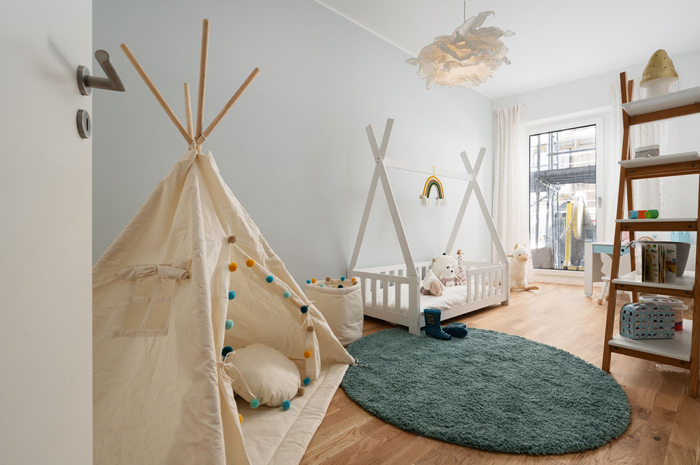Die Einrichtung ist gezielt auf die Zielgruppe junger Familien abgestimmt – einladend, modern und mit einer Atmosphäre, die Lust auf das neue Zuhause macht.